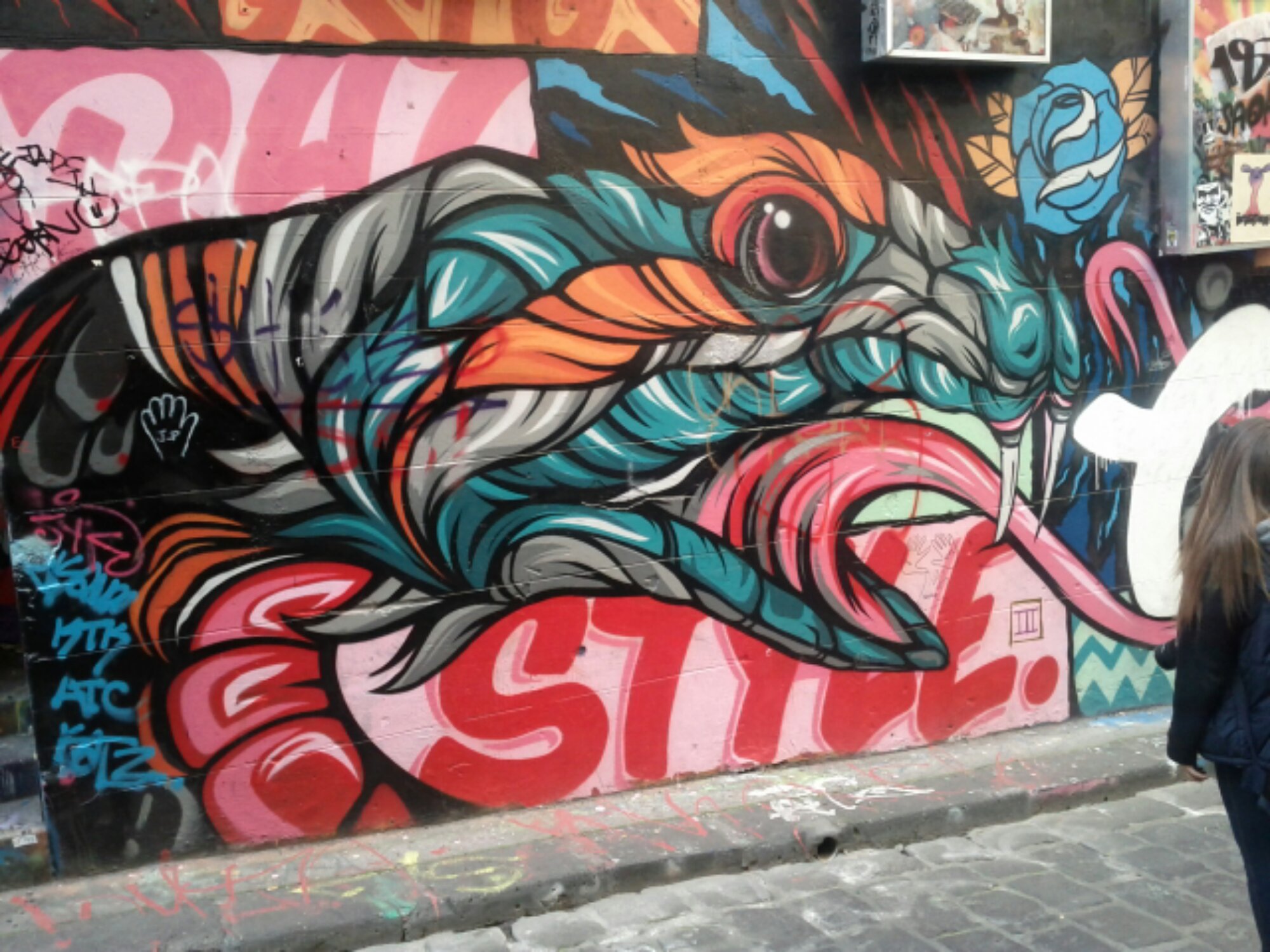 Luego me he puesto a andar hacía los jardines Fitzroy y los grafitis de las callejeras cercanas a Fed Sq, auténticas obras de arte curradísimas y que dejan una ciudad espectacular. En los jardines además, tienen el árbol de las hadas, un tocón decorado con dibujos de seres de leyenda, que han tenido que proteger para evitar que la gente metiera papeles dentro de él pidiendo deseos…