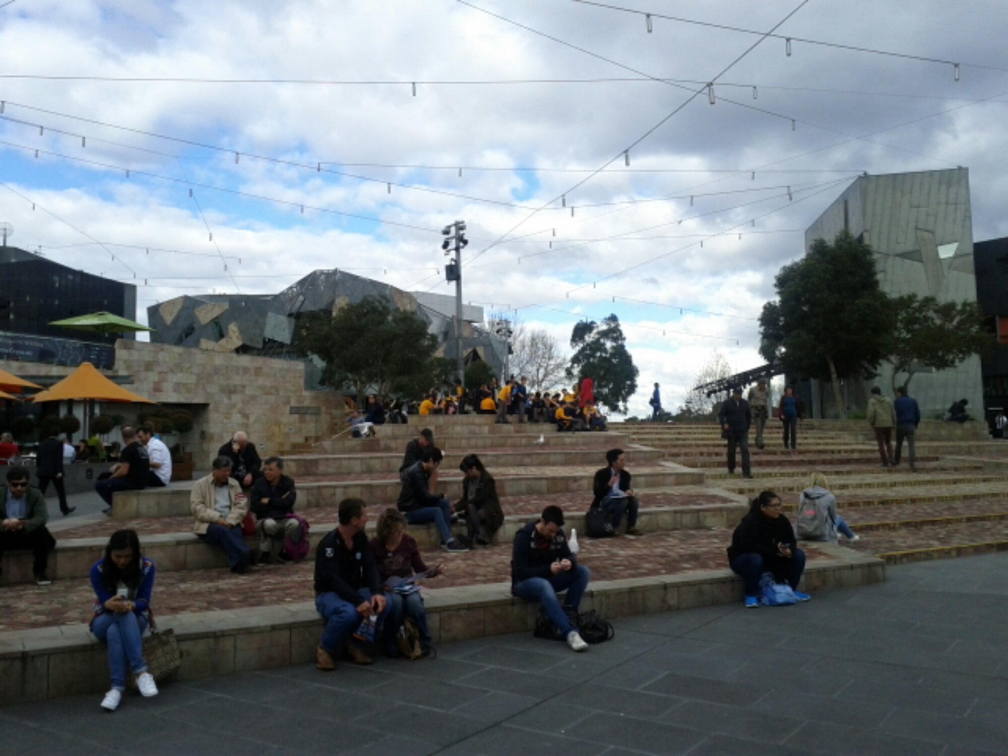 En fin, que cuando me he levantado la vida se veía de otra manera. Así que rápidamente me he vestido y he salido a patear la ciudad. He empezado desayunando en la escalinata de Federation Square, como la mayoría de los visitantes de Melbourne.