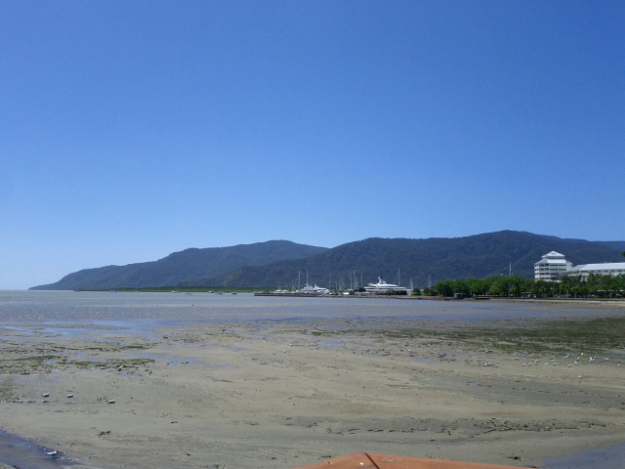 ¿Cómo sustituir? Pues sí, porque Cairns tiene una especie de playa, con sus mareas y todo, pero que no se puede usar. ¿Por qué? Os preguntaréis. Pues porque está llena de cocodrilos. Yo no he visto ninguno en toda la mañana, pero dicen que es relativamente sencillo ver alguno cerca de la costa. Resulta que los cocodrilos no son solo de agua dulce sino que también hay de agua salada. Y están aquí, en el trópico.