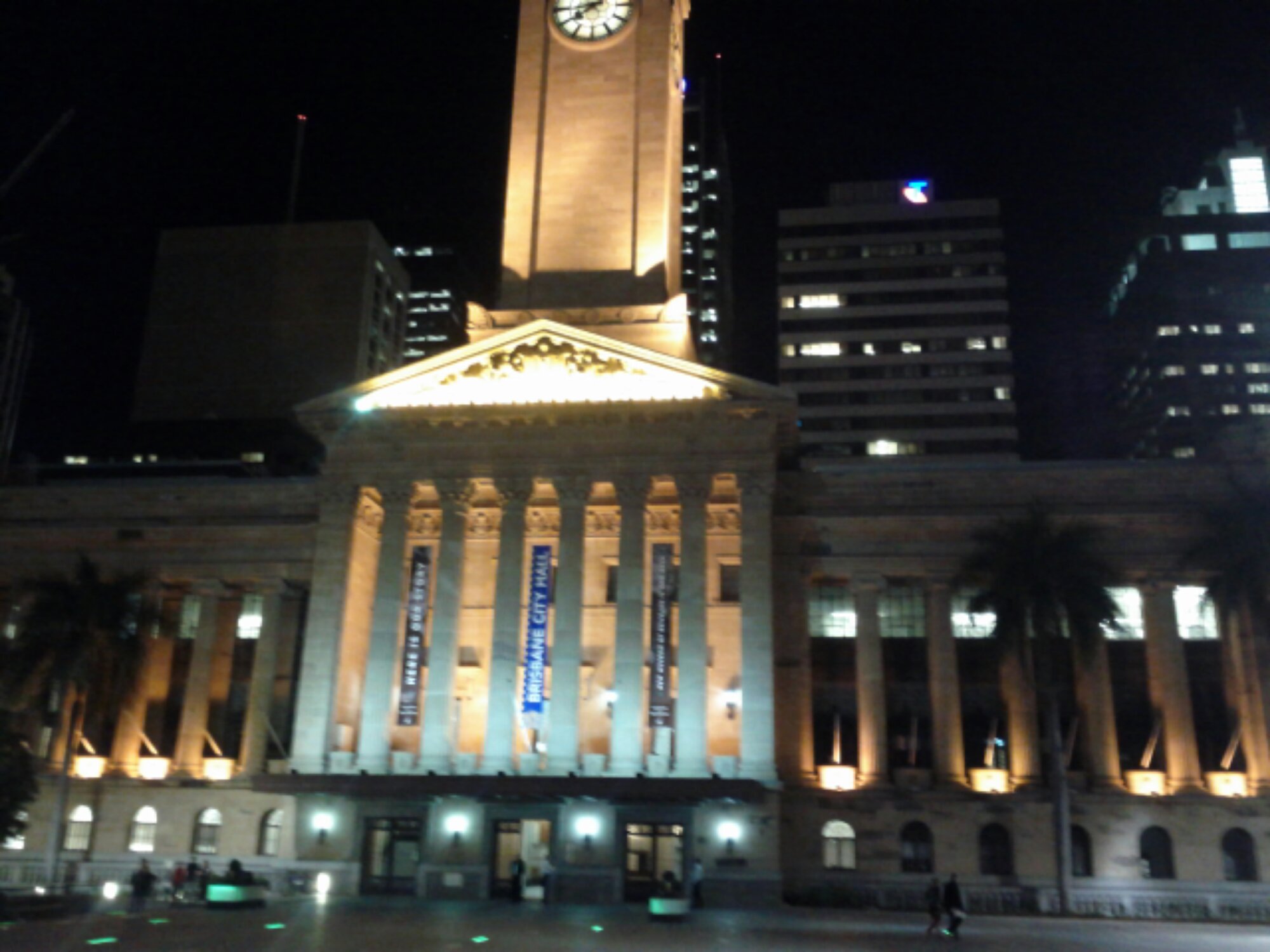 En esta ciudad anochece muy pronto, sobre las seis, así que cuando he salido del alojamiento ya era de noche. Que por cierto, estoy al lado del Suncorp Stadium donde cuando llegaba iba a empezar un partido de los Brisbane Broncos, de la liga de rugby. ¡Si lo llego a saber me hubiera cogido una entrada! A ver si en Sydney puedo ver algún partido, que es la patria del rugby australiano.