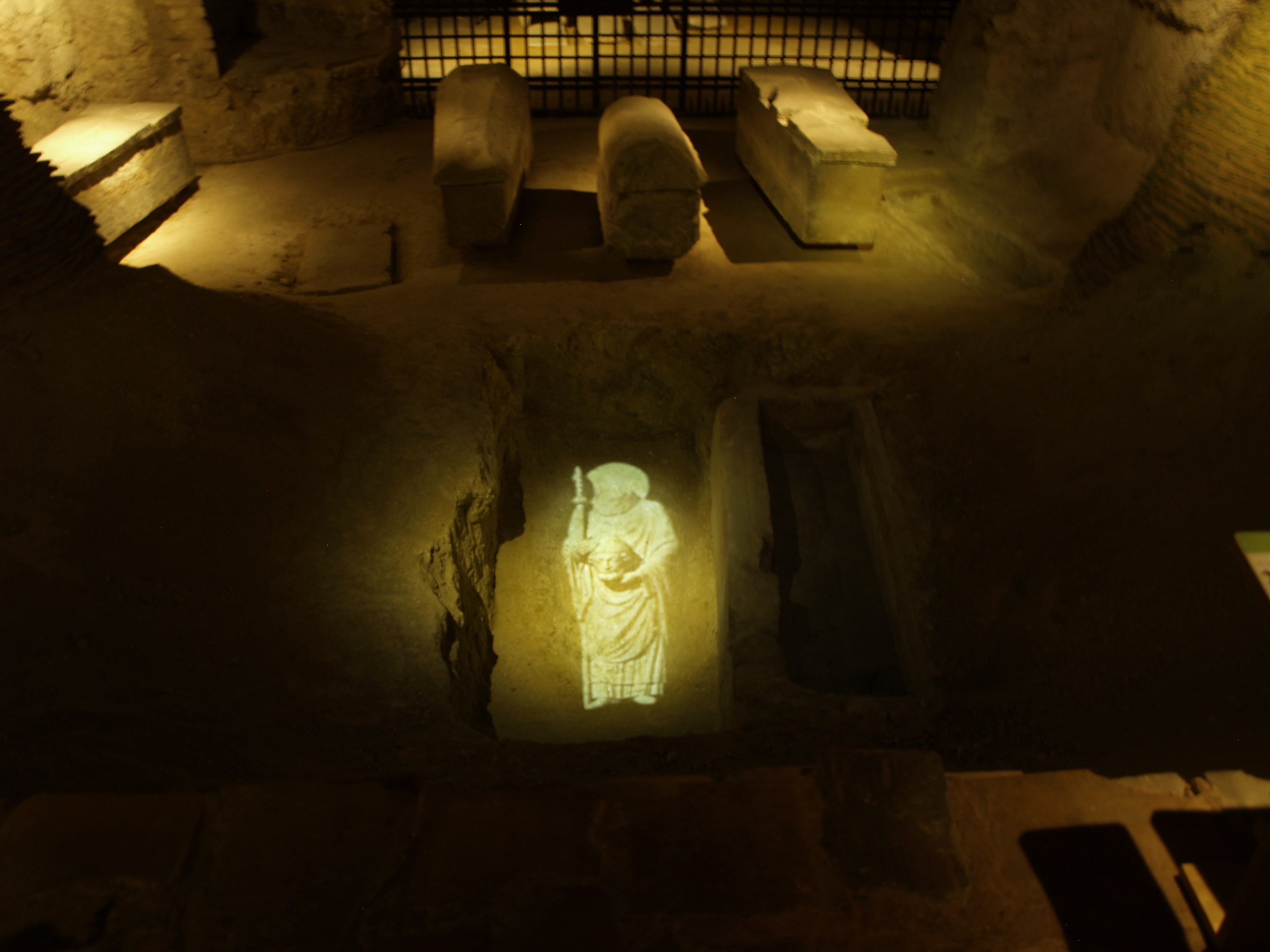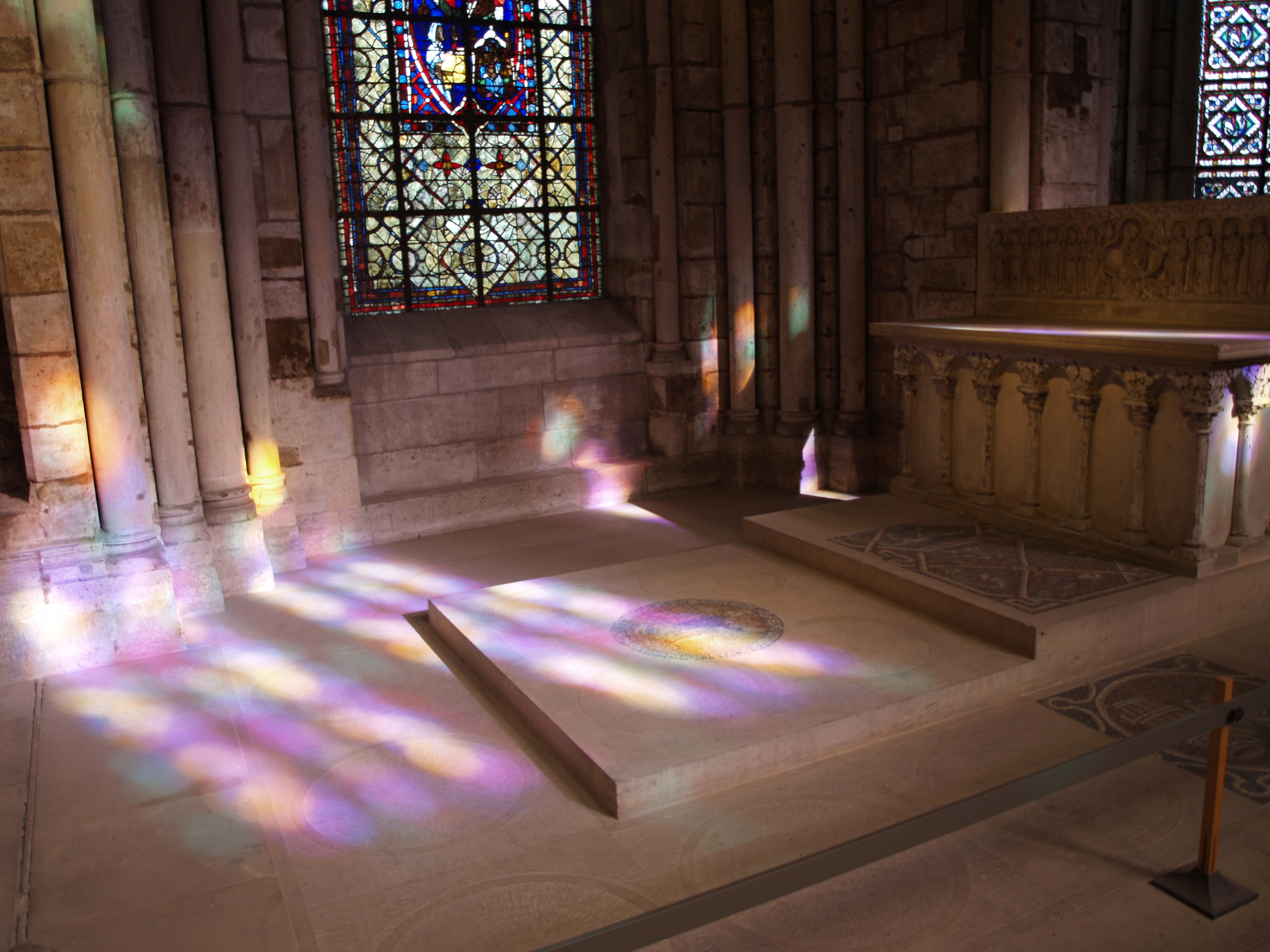 Sin embargo, todas las que se encuentran en la cripta están subordinadas al cuerpo central, donde se encuentra la presunta tumba de St. Dennis, martir y primer obispo de París. Una serie de paneles te explican por qué se cree que se encuentra aquí y cuáles son las pruebas de ello, junto con una bonita iluminación con la imagen del santo sobre la presunta tumba.