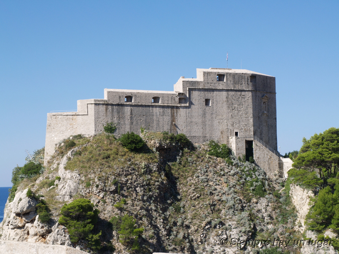 Una vez abajo, nos dirigimos a la última parada del día, el Fuerte de Lovrijenac, diseñado como fuerte externo de apoyo a las defensas de la ciudad y desde el que se tienen unas vistas magníficas de las murallas. Diremos que nos costó llegar, ya que pese a que tienes contacto visual constantemente con él, el camino para llegar por las callejas de Dubrovnik no está muy bien marcado (por decirlo suavemente), pero con el clásico método de prueba-error todo se consigue.