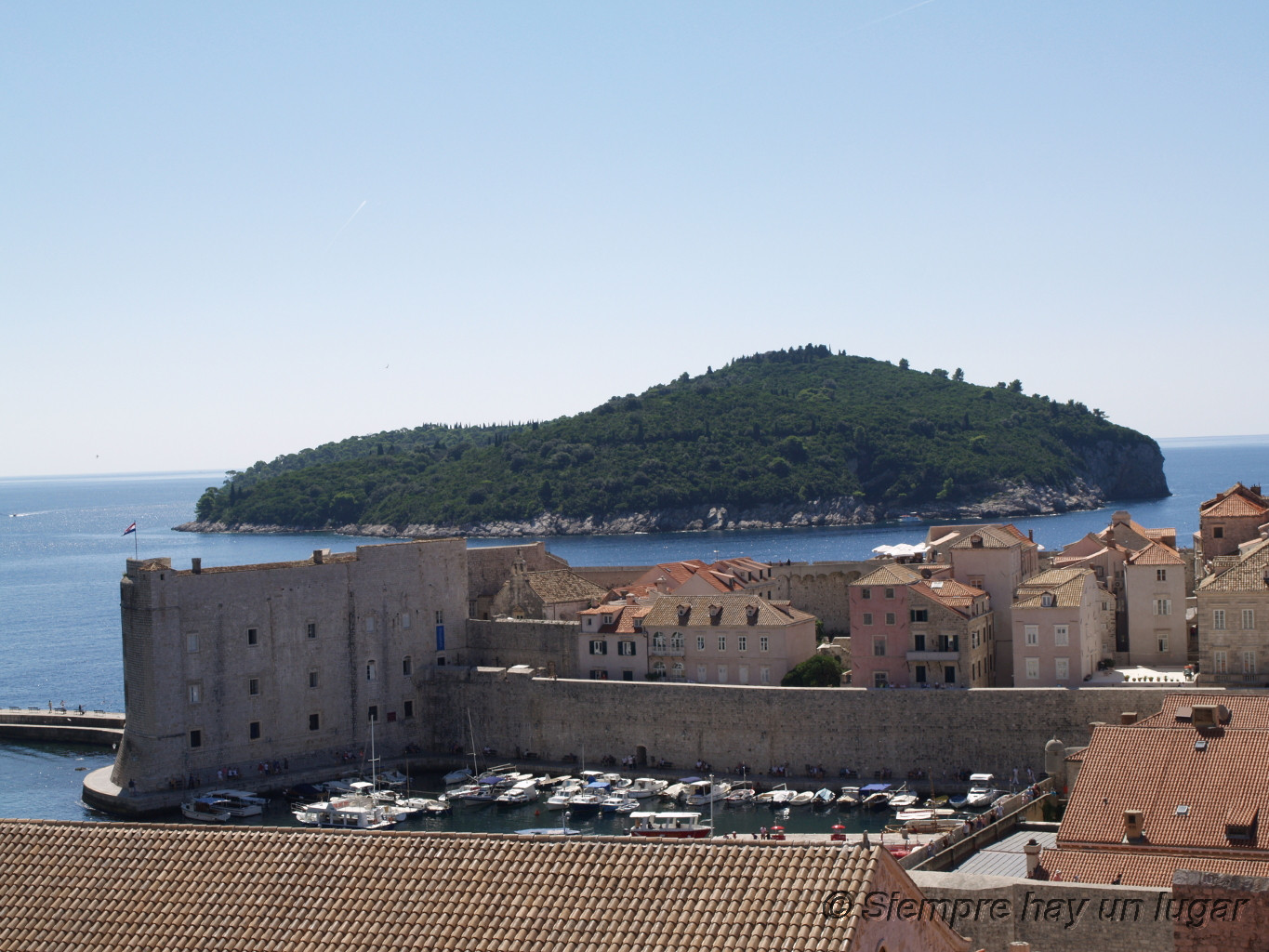 Pese a todos los peros que he puesto anteriormente, tengo que decir que la Ciudad Vieja de Dubrovnik es espectacular, es una pequeña maravilla. El paseo por las murallas de la ciudad (al precio de 100 kunas) es inolvidable, sobre todo el tramo en el que te encuentras al borde del mar y te asomas para ver las murallas insertándose en las rocas que caen directamente sobre el agua, creando una barrera insalvable para todo aquel que intentara conquistar esta antigua aliada veneciana, conocida en aquellos tiempos con el nombre de Ragusa. Las murallas suben y bajan, adaptándose al terreno, hasta alcanzar su punto más bajo en la zona del puerto, único acceso por mar a la antigua ciudad (una recomendación: llevad agua, porque no hay una sombra, puede hacer mucho calor y solo se vende agua en dos puntos de la muralla y a un precio desorbitado).