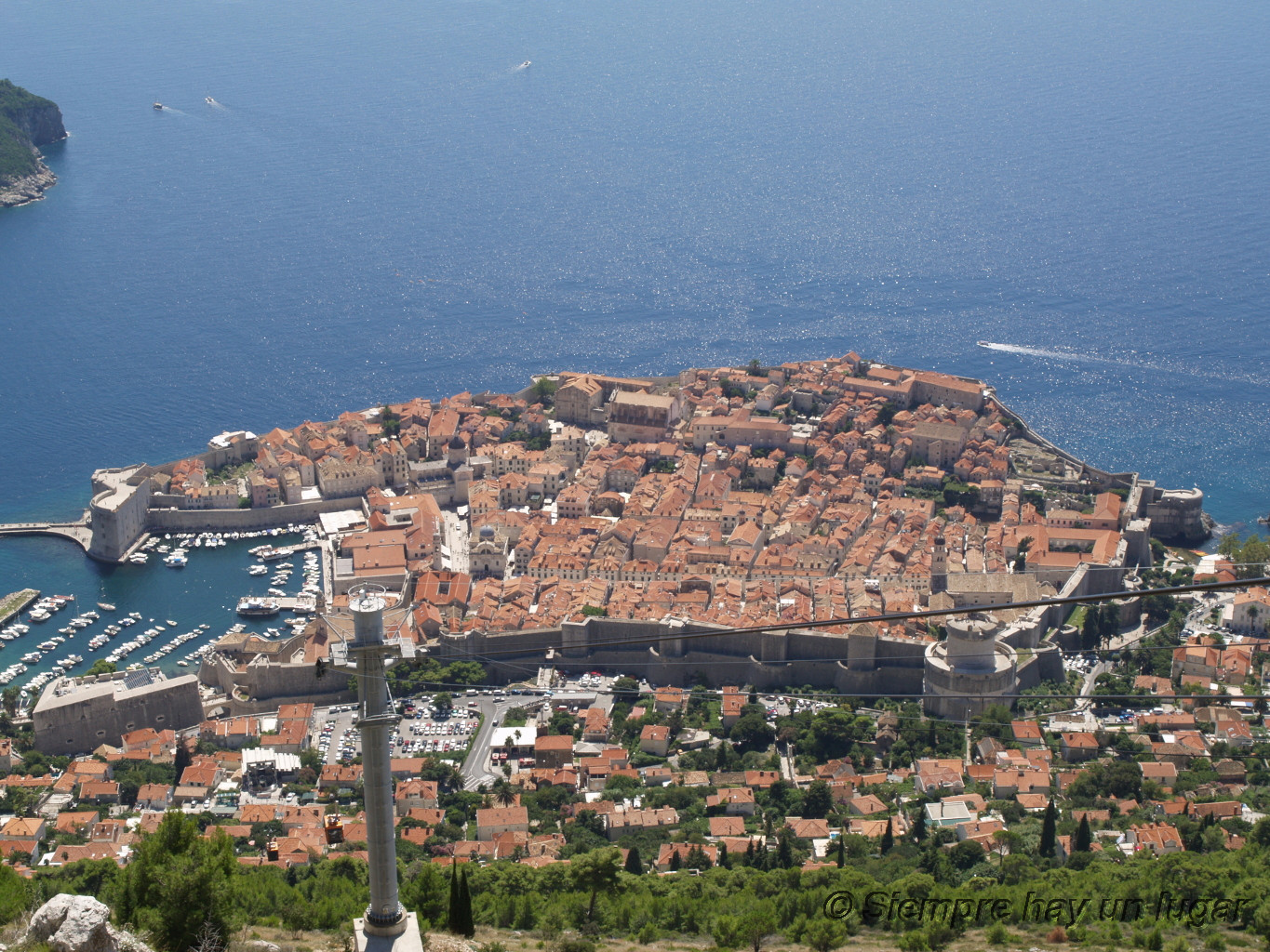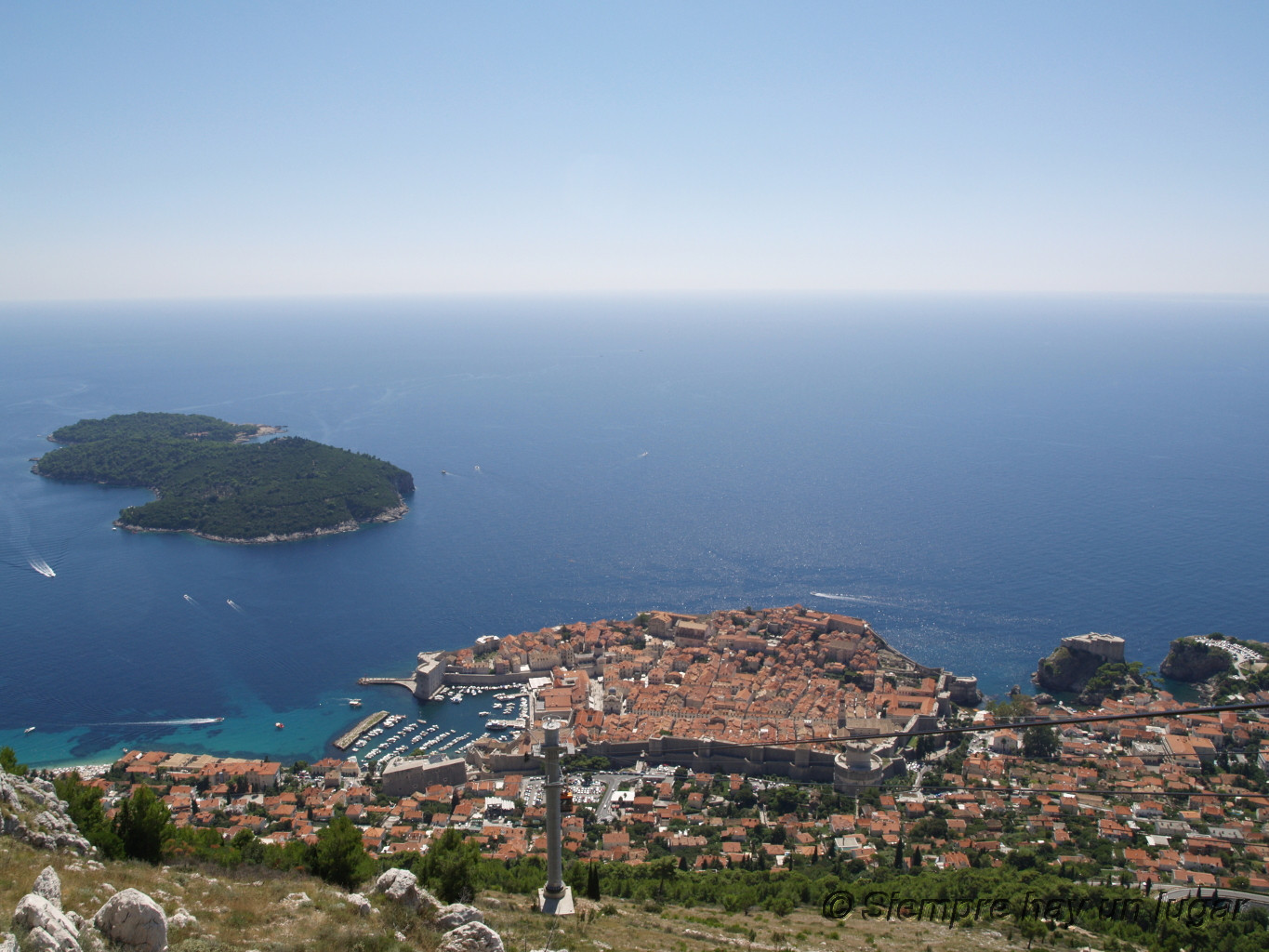 Después de comer quedaba una cosa importante por hacer: subir en el funicular a la colina Srdj para ver la más preciosa vista de la ciudad fortificada desde sus 412 metros de altura. Se puede decir que las 100 kunas que costó subir fueron las kunas mejor aprovechadas aquel día en Dubrovnik. Las vistas son simplemente espectaculares, y si no fuera por el sol de justicia que estaba pegando uno podría pasarse horas viendo la ciudad a tus pies y observando la gran cantidad de islas que rodean la bahía.