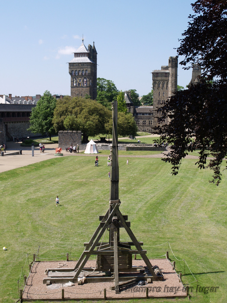 Mi fin de semana empezó en el Cardiff Castle, en el centro de la ciudad. Se trata de una fortificación bastante imponente que encierra dentro una gran explanada de césped y una pequeña fortificación en lo alto de una colina, de época normanda y construida sobre un antiguo fuerte romano. Se trató del centro de poder de Cardiff y fue cambiando de manos a lo largo de la historia del país. En un lateral de la explanada, pegado a las murallas, hay un castillo mucho más grande y más parecido a un palacio. Data del siglo XIX, cuando ya la zona era parte estable del Reino Unido y ahora alberga una gran cantidad de muebles de la época. Además, en la explanada se pueden encontrar reproducciones de varias armas de asedio.