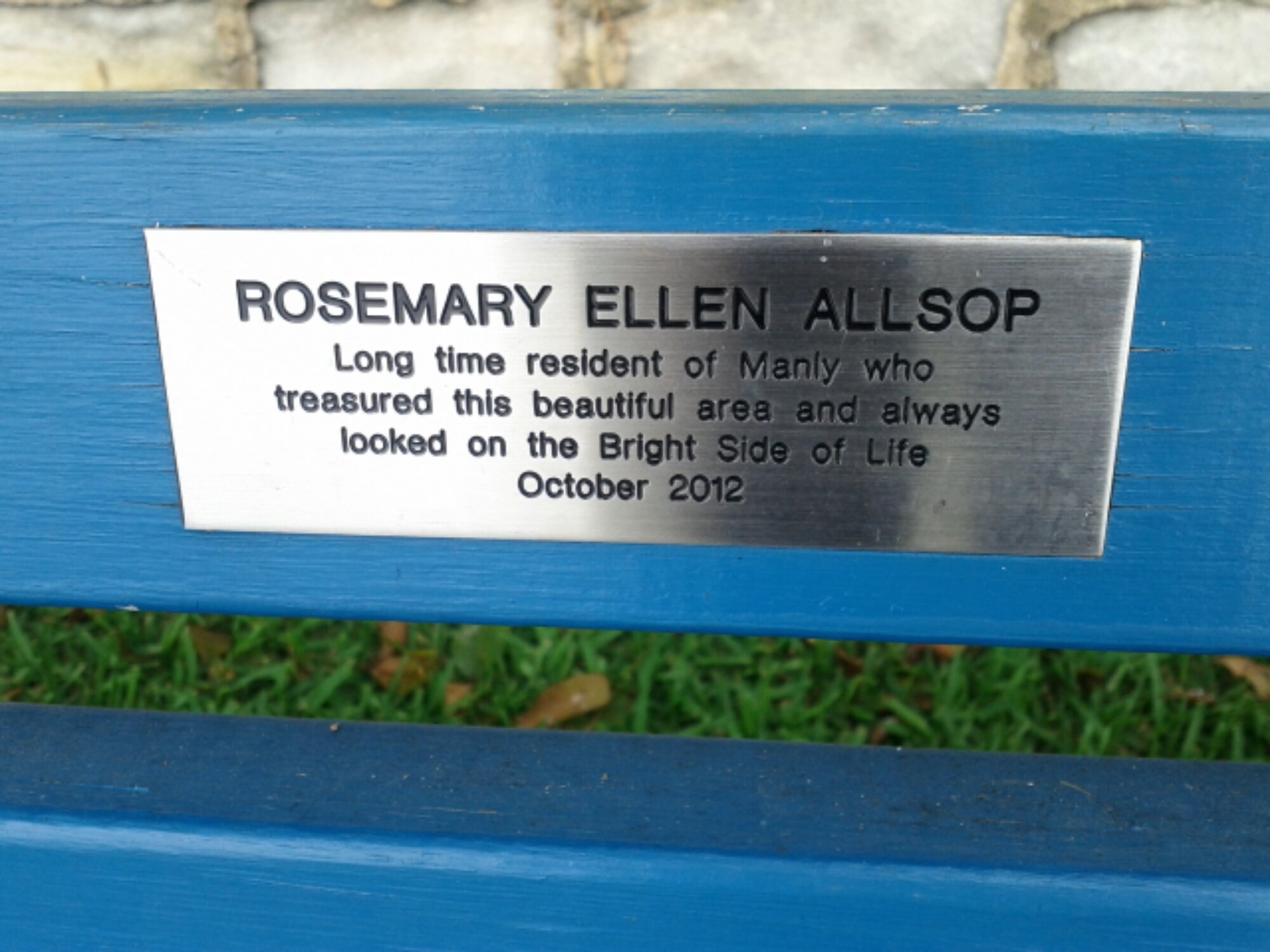 P. D. : Se me olvidaba poner la foto de una placa que he encontrado en Manly en un banco del parque, dedicada a alguien que ya nos dejó. Ojalá alguien pudiera decir algo parecido de mí cuando me toque dejar este mundo…